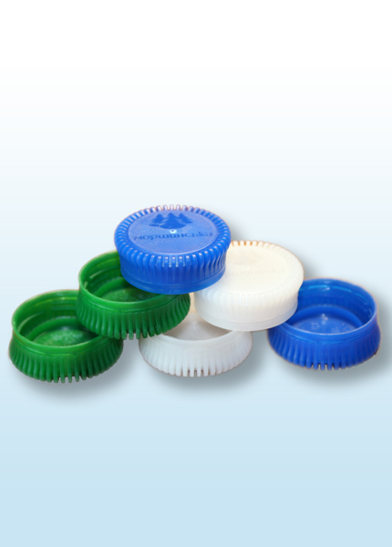 Screw caps made of polyethylene for polyethylene terephthalate bottles, which are intended for sealing polyethylene terephthalate bottles with carbonated and non-carbonated mineral and drinking water, juices and other beverages.